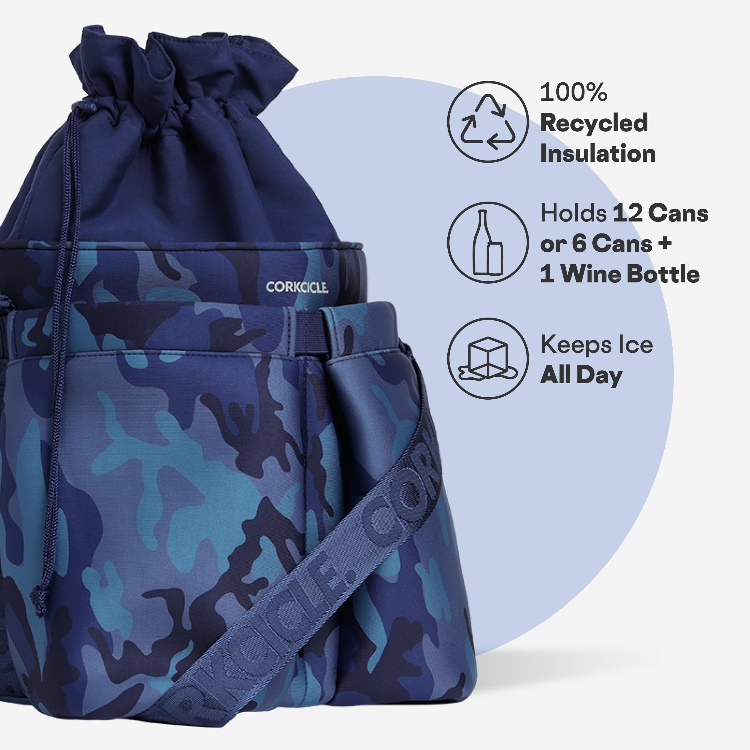 Corkcicle Beverage Bucket Cooler Bag - Insulated Ice Bucket - Summer Drink Gift - Navy Camo