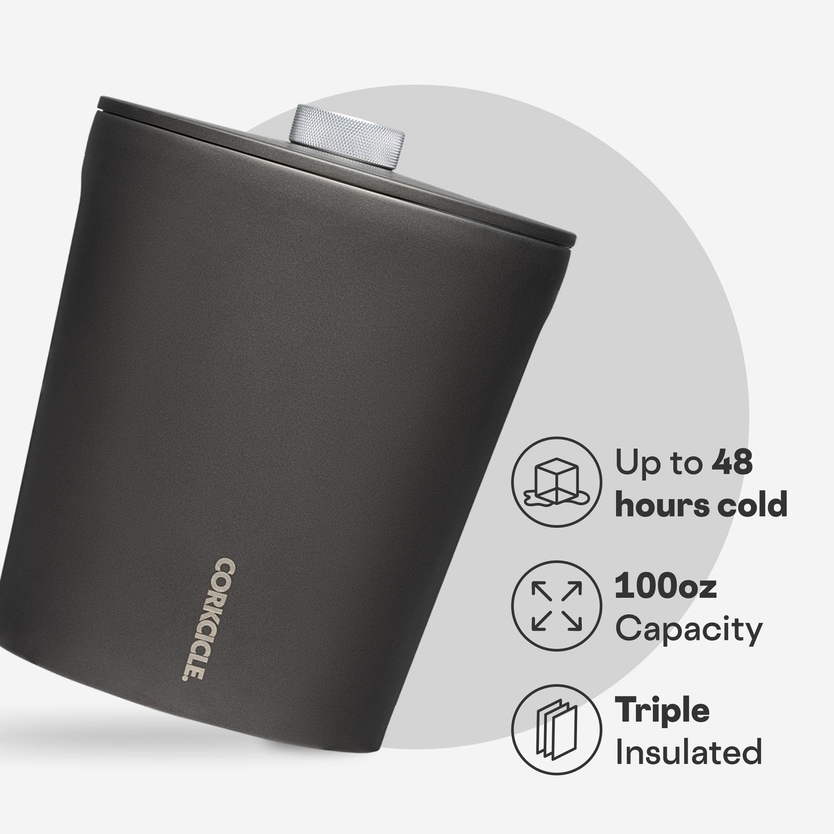 - Triple Insulated Ice Bucket: The Corkcicle Ice Bucket features triple-walled insulation for maximum temperature retention to help keep ice frozen for up to 48 hours