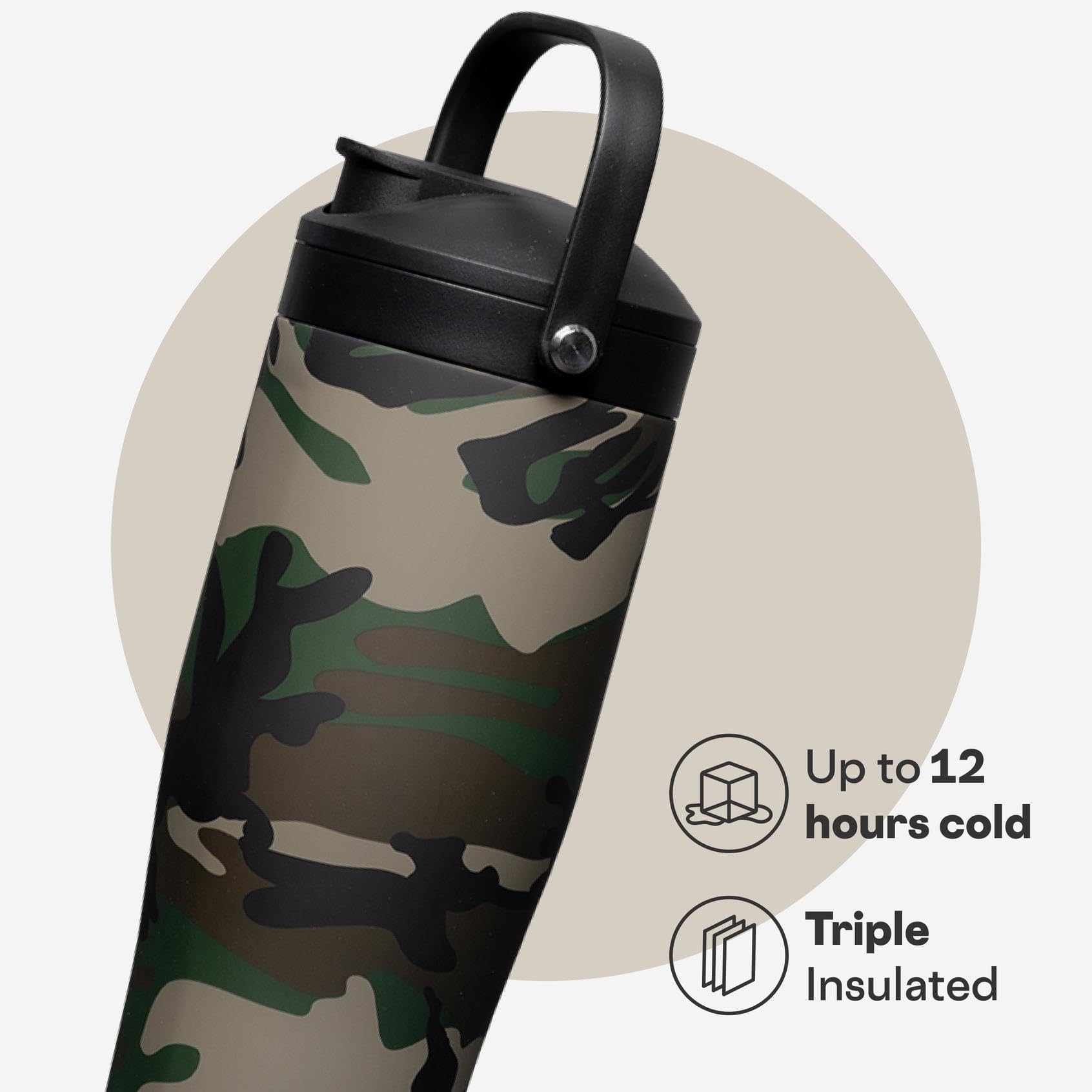 Corkcicle Protein Shaker - Built-In Agitator & Fruit Strainer Lid - 30oz - Woodland Camo—