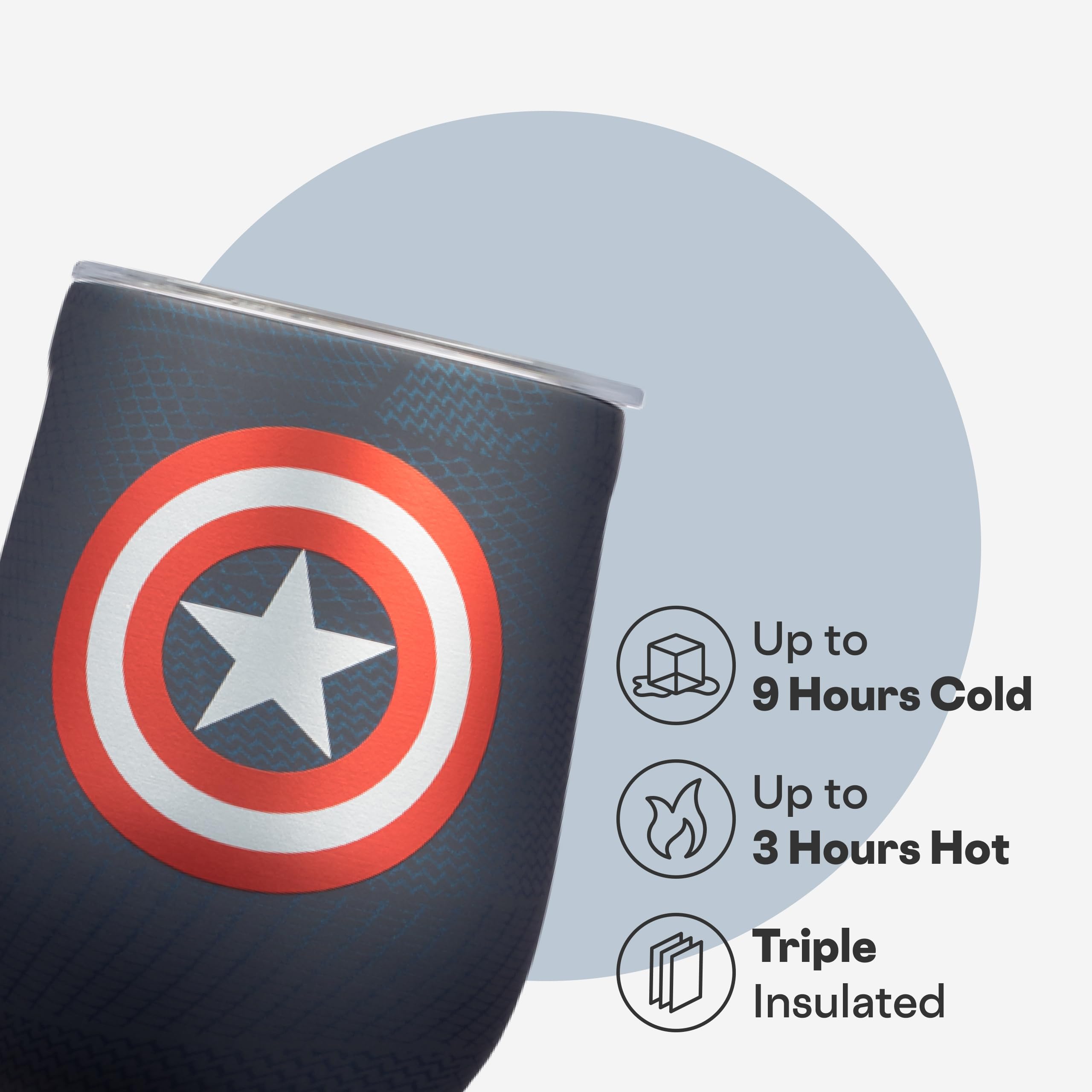 Corkcicle Stemless Insulated Wine Glass Tumbler - Keeps Beverages Cold 6 Hours & Hot 3 Hours - Stainless Steel - Easy-Grip - Summer Drinkware Gift - Keeps Drinks Ice Cold - 12 oz - Captain America—