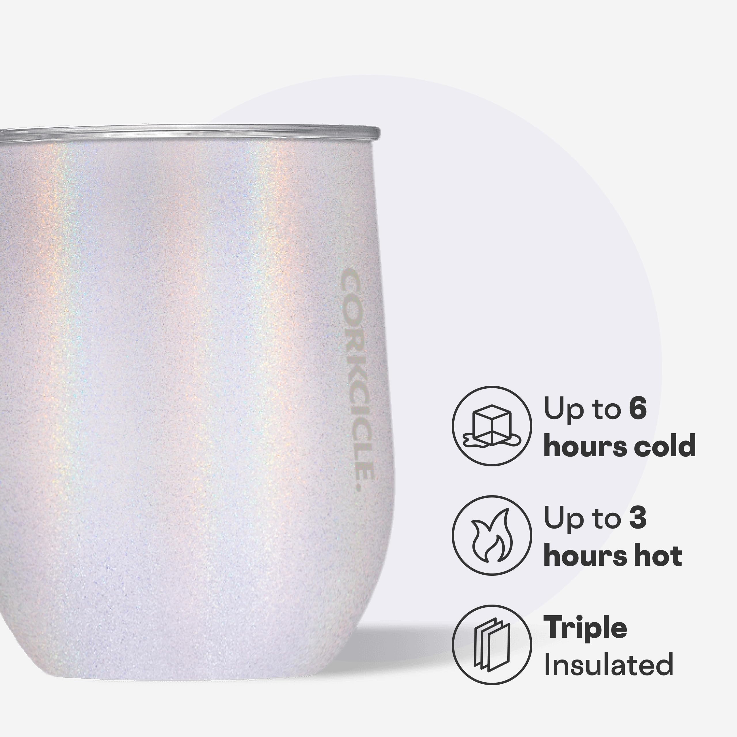 - Triple-Insulated Cup: Corkcicle Stemless Tumbler 12 oz is designed for wine but perfect for any drink; keeps beverages cold for 6 hours or hot for 3 hours