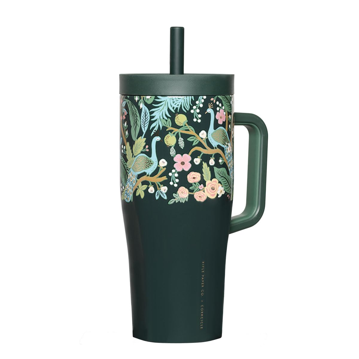 Corkcicle x Rifle Paper Co. Cruiser Insulated Tumbler with Handle & Straw - Triple-Insulated - Leakproof Travel Mug - BPA-Free - Summer Drinkware Gift - Keeps Drinks Ice Cold - 22 oz - Peacock Blue